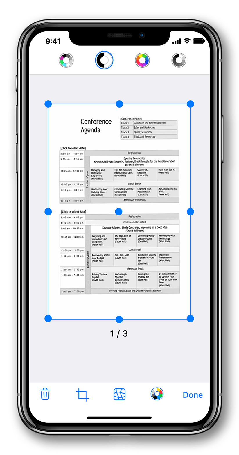 With iScanner you can scan any kind of documents, ID cards, books, receipts, paper notes, whiteboards, schedules and timetables – anything you might need in your day to day life.